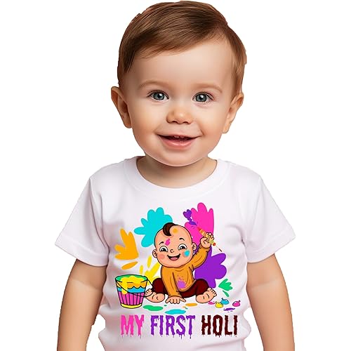 COTTONTEE Unisex My First Holi Kids Baby Polyster Half Seleeve T-Shirt