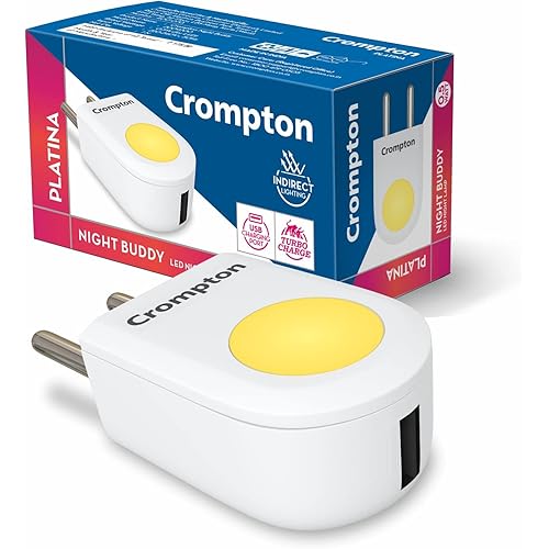 - Product Detail: Crompton Night Buddy It is a socket-based Indirect Lighting Night Lamp (0.5W) with a unique feature of a USB charging port attached to the light.