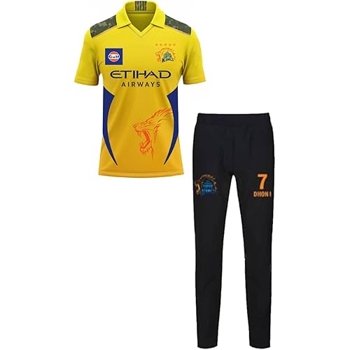 CSK Dhoni 7 Jersey T-Shirt 2024 with Logo Shorts for (Kid’s,Boy’s & Men)