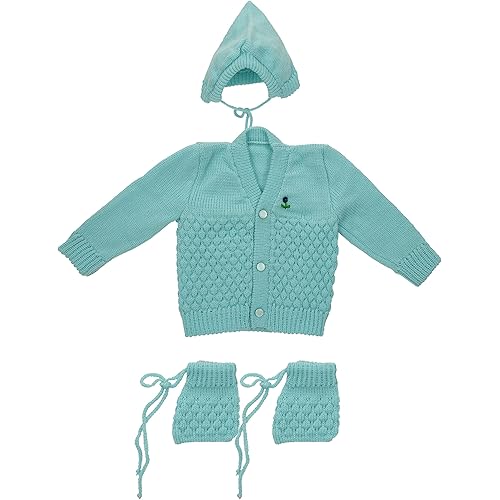 - SOFT & COZY WITH LOVE- We manufacture baby sweaters for the past 25 year, our sweaters for new born are knitted with love and care for your new born baby keeping in mind the babies soft skin. This sweater for baby comes in a combo set of front open buttoned sweater, cap & pair of Socks.