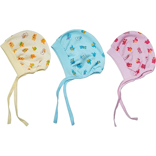 - DESIGH: Each new born Caps features an adjustable chin strap that can tighten or loosen as needed, ensuring a comfy new born cap. Classic 3 colours and design, match with any kinds of new born outfits. The new born Caps is suitable for all seasons use