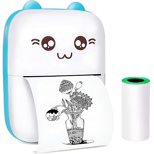 Cute Mini Portable Thermal Printer, Inkfree Wirless Bluetooth Printer Compatible with Android & iOS, Best for Students, Home, Office, Exam Notes, Stickers, Lists (1 Paper Roll, Blue)
