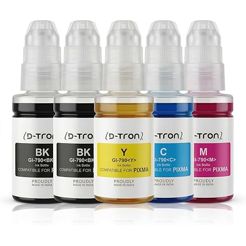D-tron 5x70mls GI790 Compatible Refill Ink for Canon Pixma G1000 G1010 G2000 G2010 G3000 G3010 G4000 G4010 G4085 Printers (Black, Cyan, Yellow, Magenta) Pack of 5