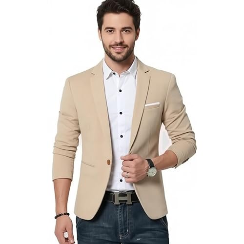 Darbar In Men’s Beige Blazer, Single Button, Formal Casual Wear, Slim Fit