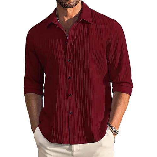 DEELMO Men’s Casual Button Down Shirts Long Sleeve Linen Shirt Fashion Textured Beach Summer Shirt
