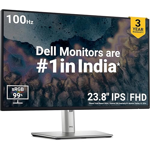 Dell 24 inch P2425H Monitor IPS FHD|100Hz| 99% sRGB | 250 cd/m2 (Typical) 5ms| 1500:1 Contrast Ratio| 5X USB 3.2 Gen1 1x HDMI 1.4 1xDP 1xVGA| Height Tilt Swivel Pivot |USB-C Downstream | Flicker Free