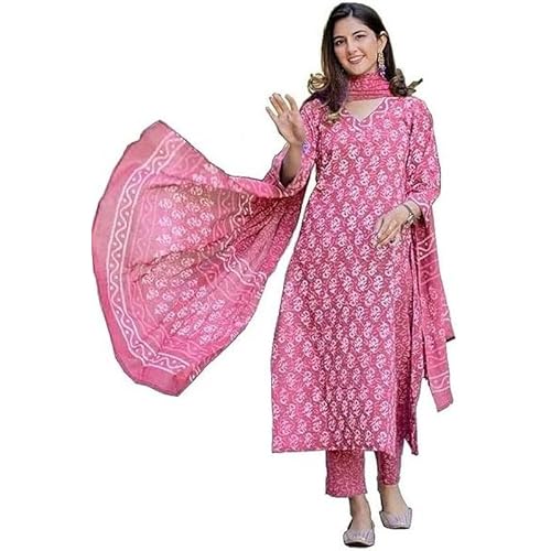 DEVIDINO Cotton Printed Women suit with Palazzo & Dupatta Set