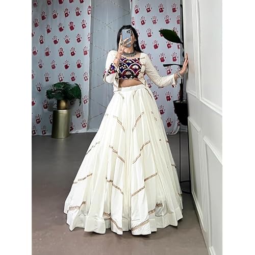 5053 reviews for Dharm Choice Traditional Navratri Chaniya Choli White Cotton Lehenga with Embroidered Border Multicolored Floral Pattern