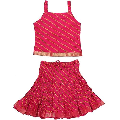 DIAMO Girl’s Jaipuri Lahariya Block Print Skirt and Top