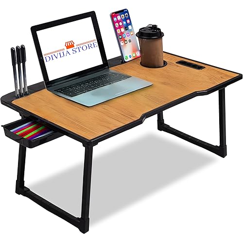 560 reviews for DIVIJA STORE Diwija Store Foldable Wooden Mini Laptop Table for Bed, Study Table with Drawer, Tablet/Mobile Holder for Kids & Adults (Wood)