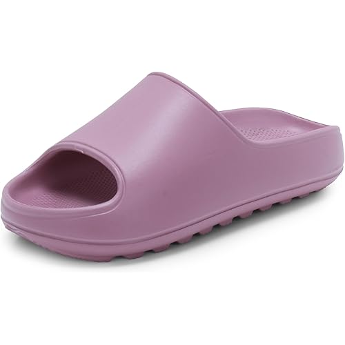 - {✔} ULTRA SOFT EVA FOOTBED- The Super Soft Thick 4.0cm EVA Outsole, the Slippers are LightWeight, Spongy & Pressure-Resistant as a Whole, Providing Excellent Stability & Shock Absorption, Making You Feel Like Walking on a Cloud & You Will Love Walking Since Then! It Effectively Absorbs Shock During Wearing, Thereby Reducing the Pressure on Feet, Knees & Back, So it’s Highly Recommended for People with Plantar Fasciitis! Thicker but Very Light, This Will Give You a Really Comfortable Experience