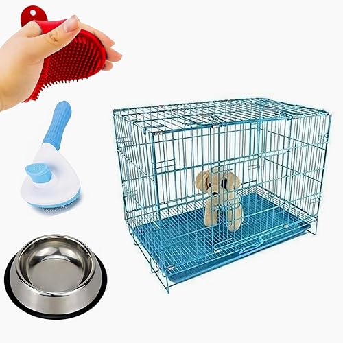 Doggo Bite 18-inch (18Lx12Wx16H) Foldable Metal Pet Crate/cage/Carrier-Spacious Cage for 1-4 kg Puppies/Kittens, Removable Tray, Portable Carrier(Glove, Slicker Brush and a Bowl-200ml Vol Free)