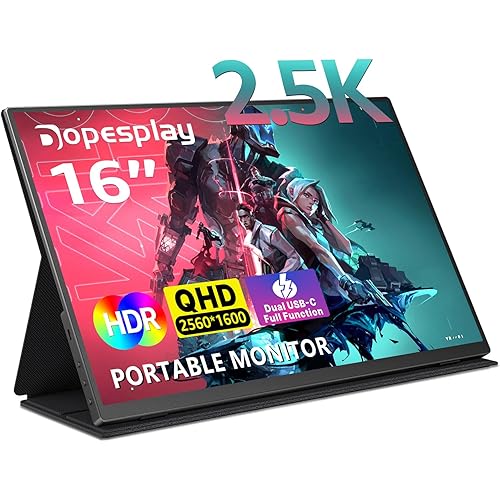 Dopesplay 2K Portable Monitor 16 Inch FHD 2560 * 1600 100% sRGB Gaming Monitor IPS Display USB-C&HDMI Built-in Speaker,External Monitor for Laptop/PC/Mac/Phone/Xbox Switch/PS4