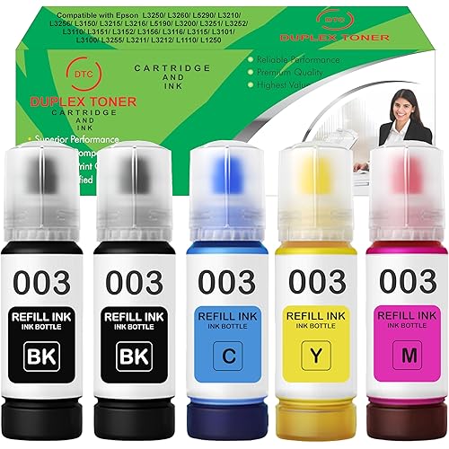 Duplex DTC – 003 Ink Compatible for Epson L3250 L3260 L5290 L3210 L3256 L3150 L3215 L3216 L5190 L3200 L3251 L3252 L3110 L3151 L3152 L3156 L3211 L3212 L1110 Printer (4 Colour Set + Black)