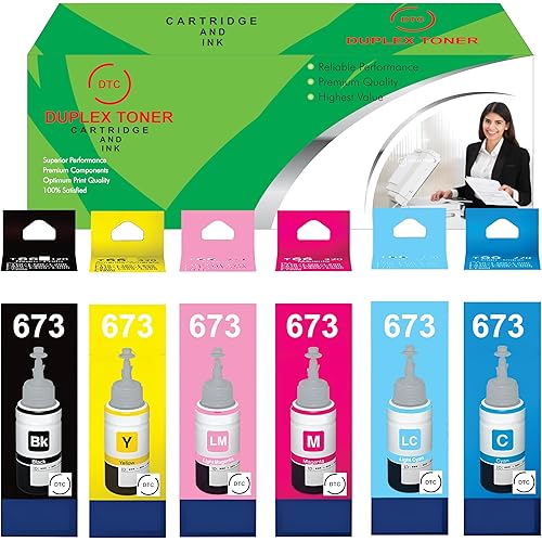Duplex DTC T673 Compatible Refill Ink for Epson L805, L800, L1800, L810, L850 Printer – Compatible Ink Bottle for Epson T673 Ink Code (70gm x C/M/Y/Bk/LC/LM) Ink Color
