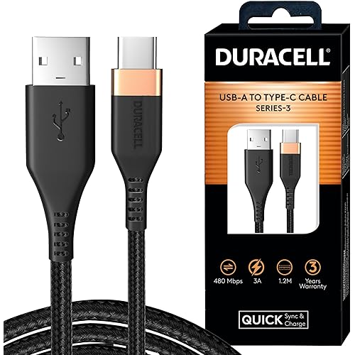 4158817 reviews for Duracell USB Type C 3A Braided Sync & Fast Charging Cable, 3.9 Feet (1.2M) for All Type – C Devices. Supports QC 2.0/3.0 Charging, with High Speed Data Transmission – Black