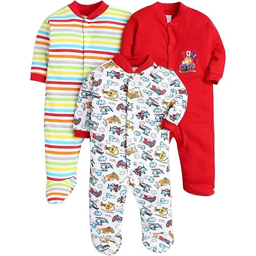 4059394 reviews for EIO 100% Cotton Baby Rompers Sleepsuits Jumpsuits Night Suits for Newborn Baby Boys & Girls | Soft Infant Bodysuit | Pack of 3 Kids Rompers