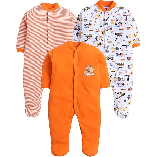 4059503 reviews for EIO 100% Cotton Baby Rompers Sleepsuits Jumpsuits Night Suits for Newborn Baby Boys & Girls | Soft Infant Bodysuit | Pack of 3 Kids Rompers