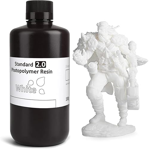 Elegoo Standard 3D Printer Resin (White 2.0) 405nm UV Curing – 1000g High Precision, Low Shrinkage, Fast Curing Photopolymer Resin for LCD/MSLA 3D Printers