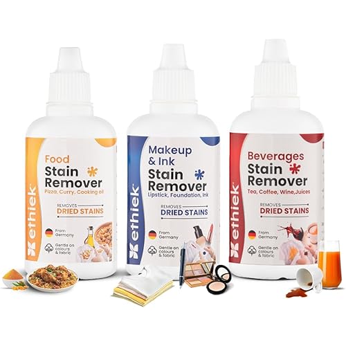 39 reviews for Ethiek | Stain Removal Specialist Kit | Works on Chutney, Haldi, Chocolate, Curry, Ball Pen, Ink, Foundation, Lipstick, Coffee, Tea, Wine, Juice Stains, Set of 3 Bottles | From Germany (50 ml X 3)