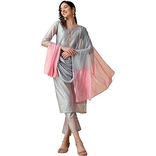 850 reviews for EthnicJunction Women’s Chanderi Silk Jacquard Straight Kurta Pant with Dupatta