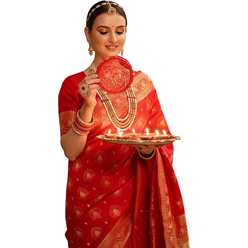415842 reviews for EthnicJunction Women’s Paithani Silk Blend Woven Saree With Blouse Piece | Karwa Chuth Speical Saree | Red Saree