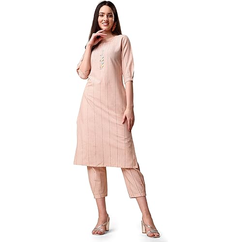 298 reviews for EthnicJunction Women’s Woven Striped Work Straight Kurta and Pant Set