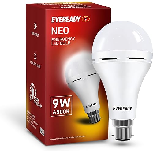 Eveready 9W B22D Emergency Inverter LED Bulb| Cool Day Light (6500K) | Energy Efficient| IBMS Technology | 4 Hour Battery Backup | Li-on Battery Inside