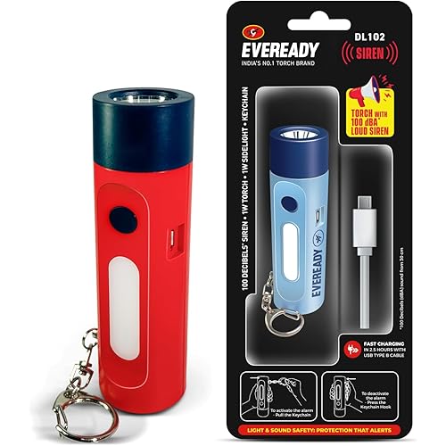 425945 reviews for Eveready Siren DL102 Rechargeable Torch with 100 Decibels (dBA) Personal Safety Alarm – for Women, Kids & Elderly | 1W Torch, 1W Sidelight, Flasher, Keychain, USB Type B Fast Charging