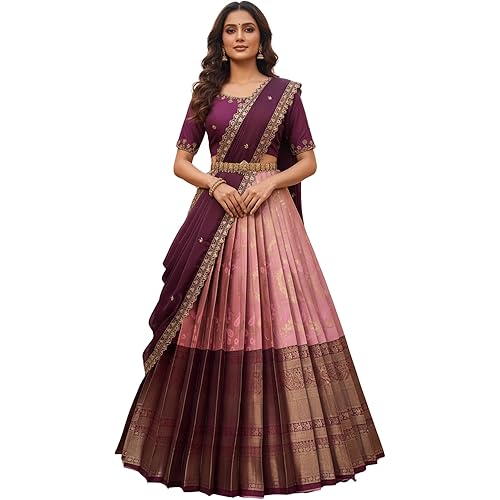 5051 reviews for Fabcartz Beautiful South Indian Style Unstitch Lehenga Choli for Women | PL228