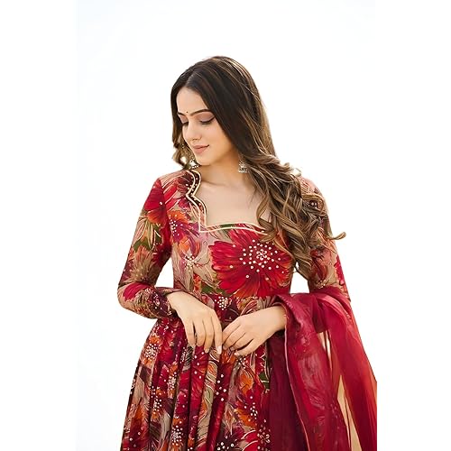 - Alluring Design: This Anarkali suit features a captivating red hue that exudes elegance and grace.