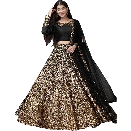 FASHIONFIT ART Women’s Embellished Sequence Velvet Ethnic wear Semi-stitched Lehenga Choli With Dupatta Set (N-55465_Golden)