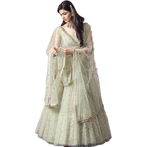 FEALDEAL Women’s Pista Green semi-stitched cancan lehenga choli with dupatta