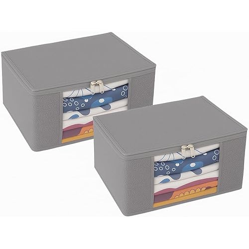 FEXME Non-Woven Printed Saree Cover/Cloth Storage/Wardrobe Organizer For Clothes with Transparent Window – 45cmx33cmx22cm (Grey, Pack of 2)
