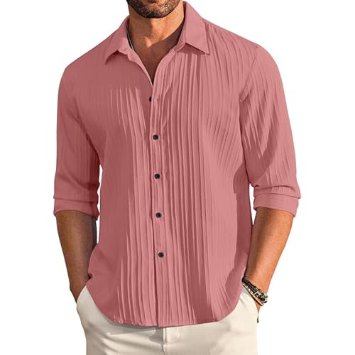 FINIVO FASHION Men’s Casual Cotton Plain Button Down Shirt Long Sleeve Textured Summer Beach Shirt for Men