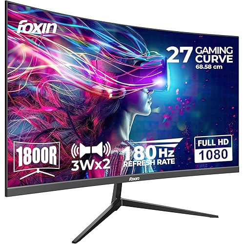 3456 reviews for Foxin Phantom 27 inch (68.58 cm) 1800R Curved Gaming Monitor, FHD 1920x1080p, 300Nits, 180Hz, 1ms, Adaptive Sync | sRGB | 2 x DP, 2 x HDMI | RGB Backlight, Built-in Speakers | Wall Mountable | Black