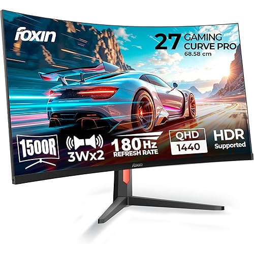 2858 reviews for Foxin Phantom Pro 27 inch (68.58 cm) 1500R 2K Curved Gaming Monitor, QHD 2560x1440p, 300Nits, 180Hz, 1ms, Adaptive Sync | sRGB | 2 x DP, 2 x HDMI | RGB Backlight, 3W x 2 Built-in Speakers | Black