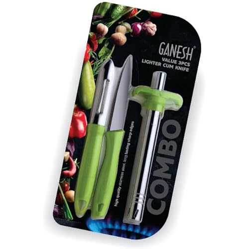 4151029 reviews for Ganesh Stainless Steel Gas Lighter with Knife & Peeler for Kitchen Use Restaurants Metal Gas Stove Lighter Regular Size Easy Grip, 3-Piece, Colour May Vary Colour