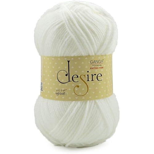 Ganga Acrowools Acrylic Desire Hand Knitting and Crochet Yarn. Pack of 1 Ball – 100Gms. Shade No – Dsr007, White