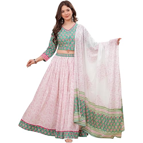 GEKHA Printed Cotton Ready to Wear Lehenga & Blouse With Dupatta for women