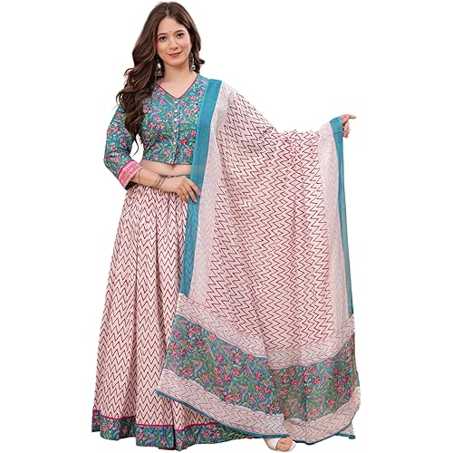 GEKHA Printed Cotton Ready to Wear Lehenga & Blouse With Dupatta for women