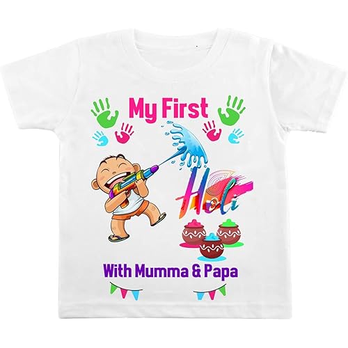 GIFT JAIPUR My First Holi wid Mumma & papa Tshirt for Kids Baby boy Girl Infant Unisex Half Sleev Round Neck Tshirts