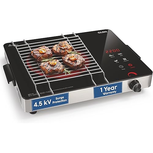 4153482 reviews for Glen 2200W Infrared Cooktop Stove with Steel Grill Rack Touch Control, Polished Crystal Glass Plate, Digital Display 3 Modes, 4.5KV Surge Protection for Induction & Flat Bottom Utensils (SA-3074IR22)