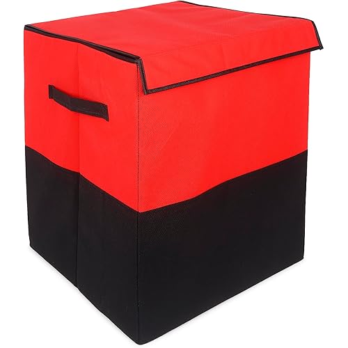 GLUN® 75L Folding Laundry Basket, Large Laundry Hamper With Lid & Handles, Collapsible Storage Basket for Bedroom & Bathroom (Red) Pack of 1