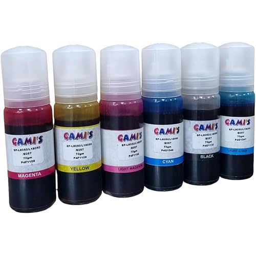 GMP 057 Refill Ink for Epson L8050, L18050 Printer – Compatible Ink Bottle for Epson 057 Ink Code for Epson Inktank Printer – (70gm x C/M/Y/Bk/LC/LM) Ink Bottle