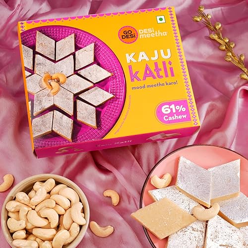 228 reviews for GO DESi Premium Kaju Katli 200 grams, 61% Cashews, DESi Meetha, Sweets Indian Mithai, Cashew, Indian Sweets Gift Pack, Diwali Gifts, Diwali gifts for family and friends, Diwali gift hampers