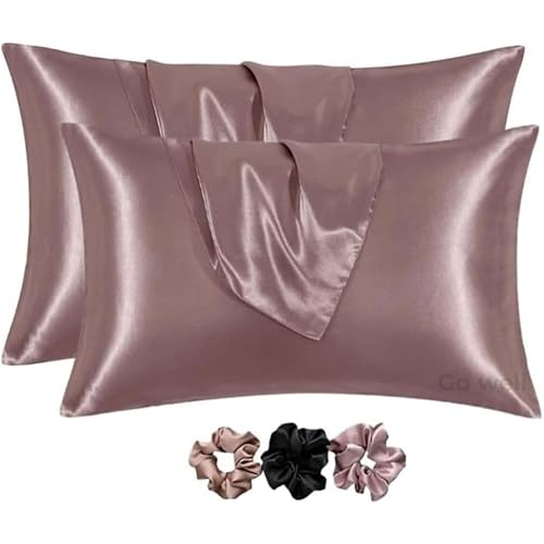 Go well Satin Silk Pillow Covers Pack of 2 for Hair and Skin-with Satin Scrunchies for Women Stylish|Satin Pillow cover for Hair and Ski|scrunchies for Women 3-Piece|Silk Pillow case(Rose taupe)800TC