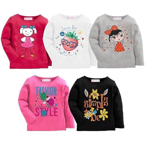 GOODLUCK BANIYAN Girl’s Cotton T-Shirt | Regular Fit Top | Printed Baby Girl Upper Wear| Girl Child Cuddle T Shirts | Kids Girl Casual Wear Combo of 5