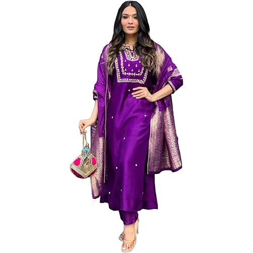 967 reviews for GoSriKi Women’s Jagah Silk Blend Straight Embroidered Kurta with Pant & Dupatta