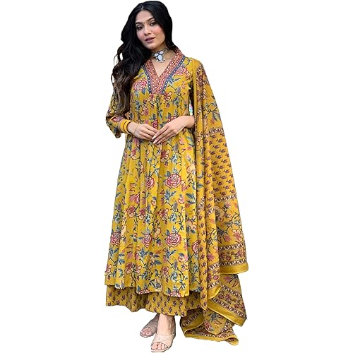 37510176 reviews for GoSriKi Women’s Rayon Viscose Anarkali Printed Kurta with Palazzo & Dupatta